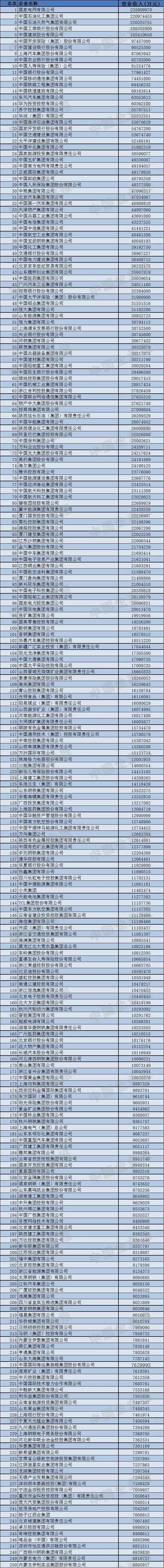 (附2018年中國企業500強完整名單。)